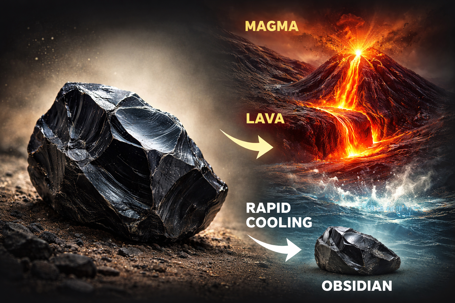 Sopečné sklo ostřejší než skalpel - Obsidián. Vzniká rychlým zchlazením lávy - je neuvěřitelně tvrdé a ostré. Má temnou načervenalou barvu a skelný lesk.