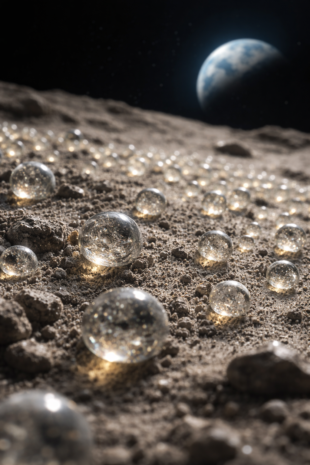 A to je pravda, opět díky extrémním přírodním procesům. Když do povrchu Měsíce narazí meteorit, vzniká obrovský tlak a teplota. Hornina se okamžitě roztaví a po rychlém zchladnutí ztuhne ve formě skleněných kuliček.