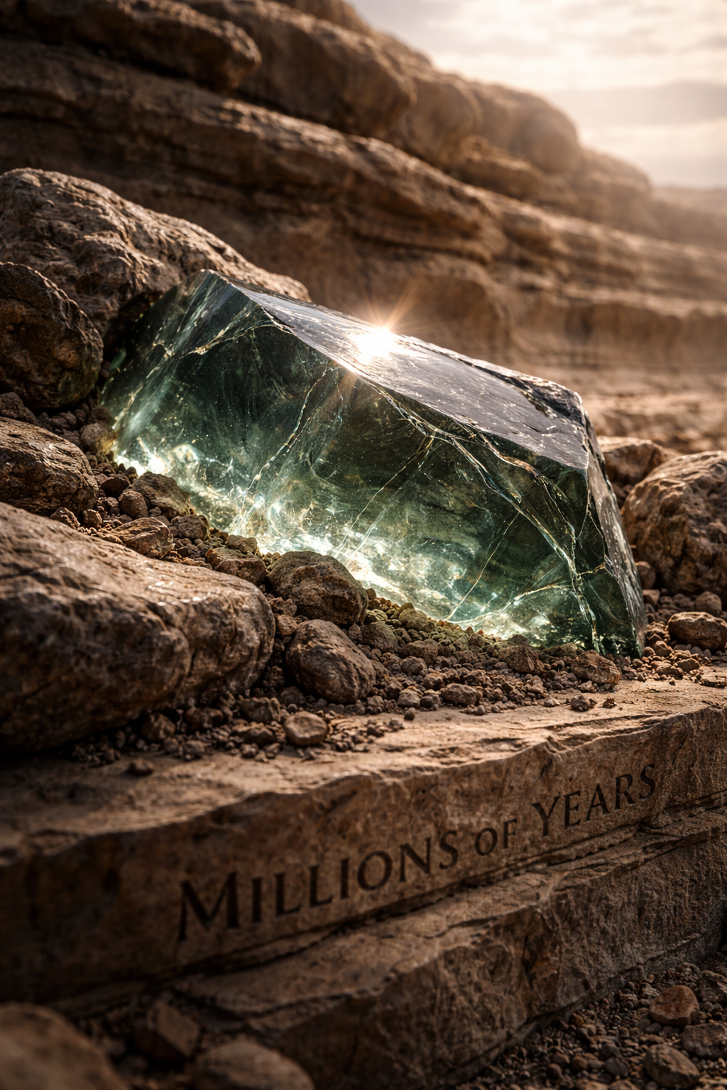 Mluvíme o milionech až miliardách let (geologické časové měřítko). Většina materiálů (jako kovy nebo organické látky) za tu dobu podlehnou korozi, rozkladu nebo erozi. Sklo je ale neuvěřitelně stabilní solidní látka.