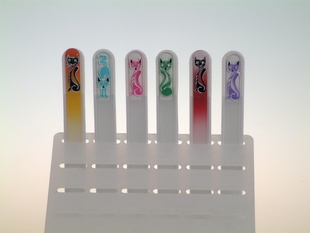 Skleněný pilník na nehty s ručně malovaný dekorem kočičky nebo květiny působí v kombinaci se třpytem skleněných kamínků velice noblesně. Úžasné celkové provedení produktu evokuje pocit, že vlastníte krásný šperk. Luxusní skleněný design bude bavit vás a zaujme i vaše okolí.