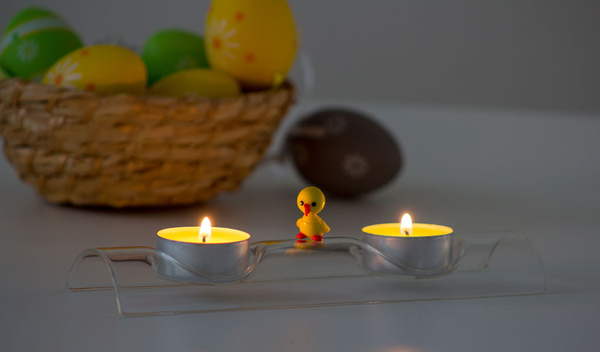 Zpříjemněte si velikonoční čas zapálenou čajovou svíčkou v obloukovém svícnu s figurkou zvířátka, které symbolizuje tyto svátky. Například beránek nebo zajíček.